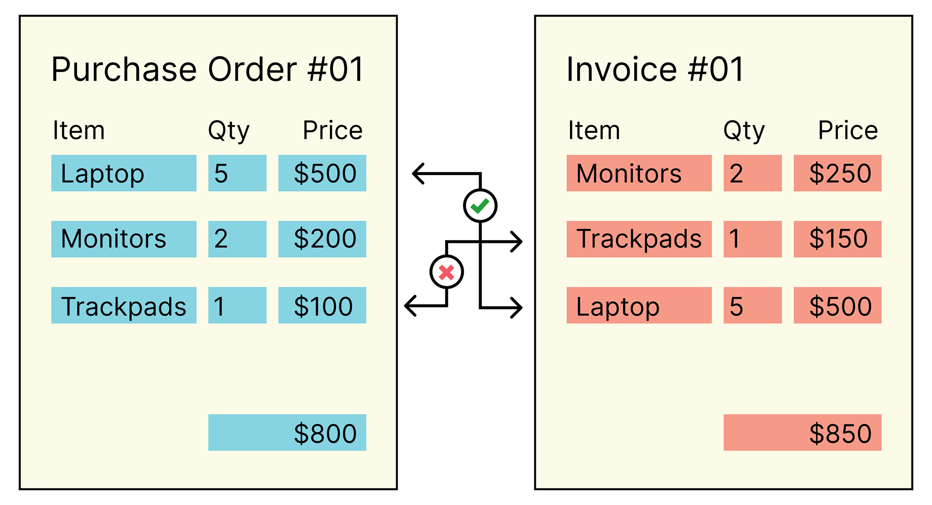 • Invoice quantity must be equal to or less than the matched quantity. If it's greater, it signals the customer is being billed for more than what was accepted.